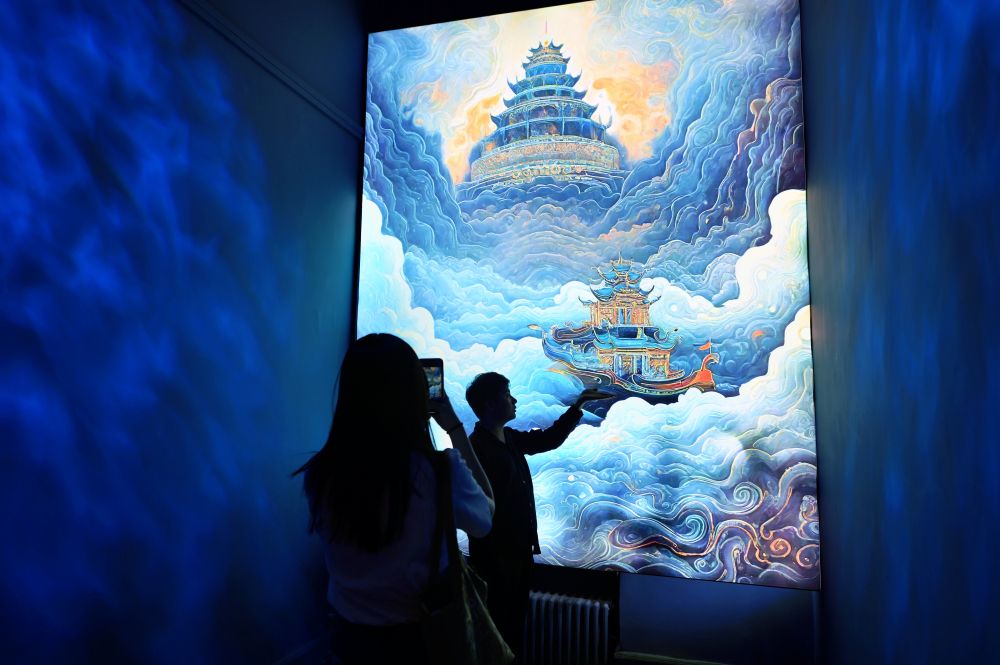 “很多觀眾感受到‘在百年洋樓中仰望千年文明’的奇妙感覺?!碧旖驍?shù)字藝術(shù)博物館講解員黃麗潔說,這個(gè)展覽互動(dòng)性、社交感強(qiáng),通過對(duì)經(jīng)典藝術(shù)作品沉浸式呈現(xiàn),讓數(shù)字藝術(shù)走近普通觀眾,為大眾文化生活帶來全新體驗(yàn)。