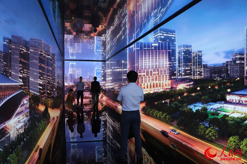 河北展區(qū),雄安新區(qū)時(shí)空長(zhǎng)廊打造出沉浸式、交互式創(chuàng)意體驗(yàn)空間。人民網(wǎng) 劉森君攝