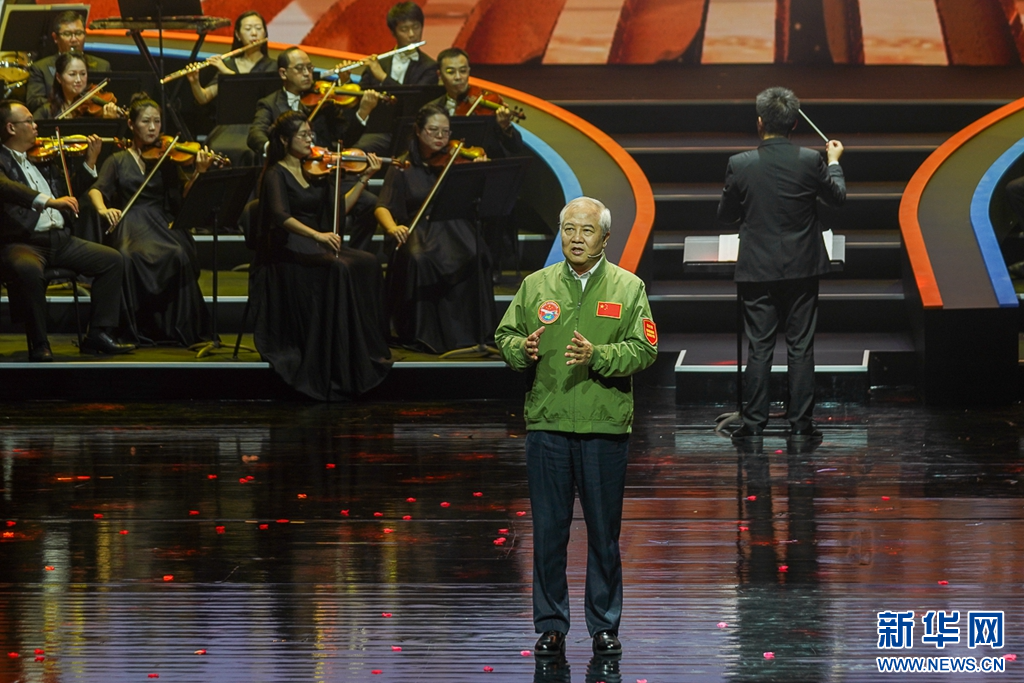 這是7月17日晚上拍攝到的晚會(huì)尾聲,交響合唱《人民至上》。新華網(wǎng) 肖和勇 攝