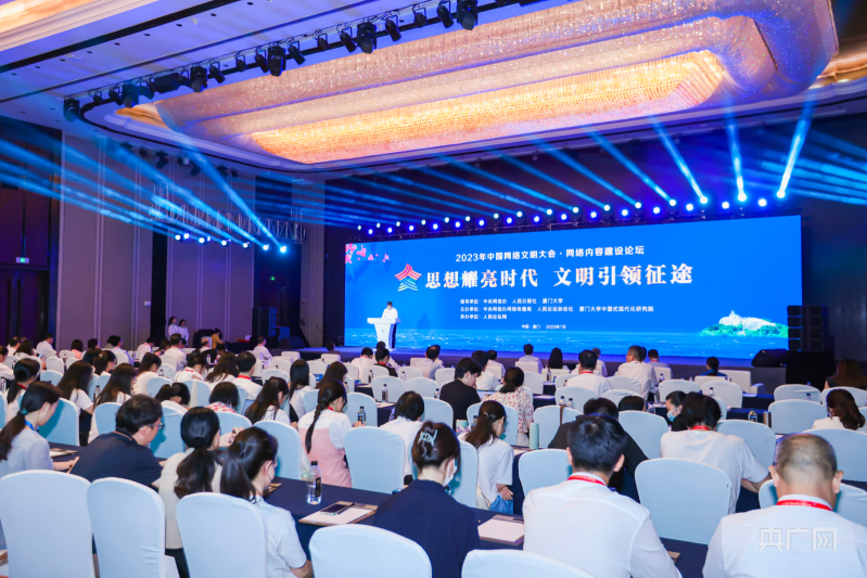 7月18日,2023年中國(guó)網(wǎng)絡(luò)文明大會(huì)網(wǎng)絡(luò)內(nèi)容建設(shè)論壇在福建省廈門市舉行。本次論壇以“思想耀亮?xí)r代 文明引領(lǐng)征途”為主題,旨在強(qiáng)化網(wǎng)絡(luò)空間思想引領(lǐng),守正創(chuàng)新做好黨的創(chuàng)新理論網(wǎng)上傳播,扎實(shí)推進(jìn)網(wǎng)絡(luò)文明建設(shè)。世界互聯(lián)網(wǎng)大會(huì)秘書長(zhǎng)、中國(guó)網(wǎng)絡(luò)社會(huì)組織聯(lián)合會(huì)會(huì)長(zhǎng)任賢良,人民日?qǐng)?bào)社副總編輯徐立京,新華社副社長(zhǎng)劉健,福建省政府副省長(zhǎng)、黨組成員,福建省公安廳黨委書記、廳長(zhǎng)李建成,廈門大學(xué)黨委書記張榮出席論壇并致辭。