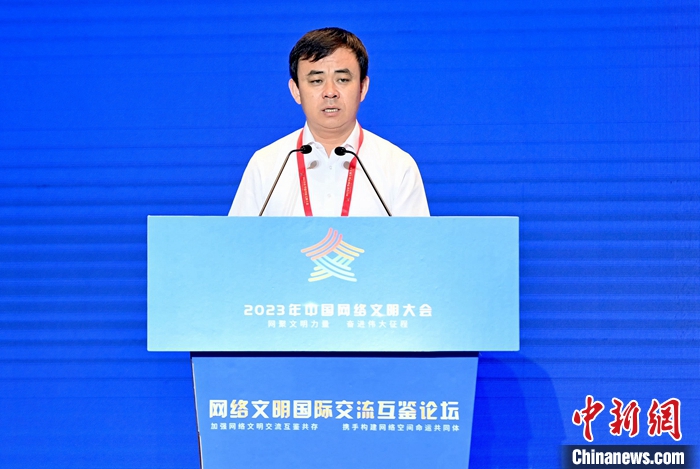 7月18日,2023年中國(guó)網(wǎng)絡(luò)文明大會(huì)網(wǎng)絡(luò)文明國(guó)際交流互鑒論壇在廈門舉辦。圖為山東省日照市委副書記王新生作主題演講。中新社記者 王東明 攝