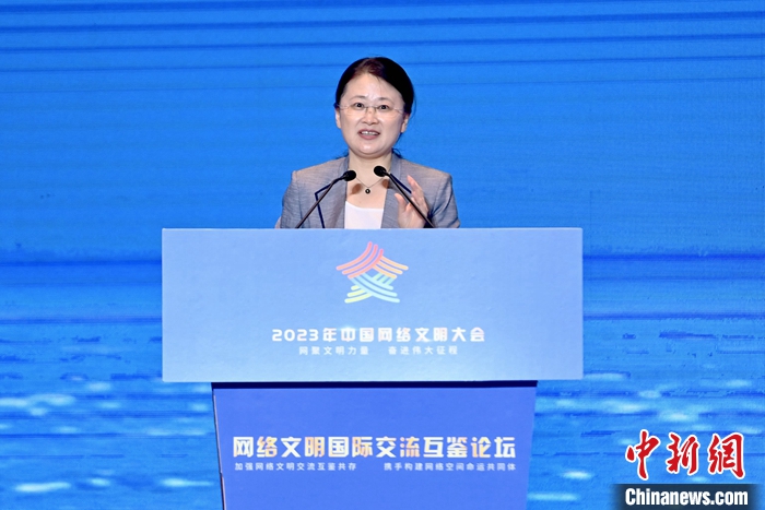 7月18日,2023年中國(guó)網(wǎng)絡(luò)文明大會(huì)網(wǎng)絡(luò)文明國(guó)際交流互鑒論壇在廈門舉辦。圖為江蘇省蘇州市委網(wǎng)信辦主任陳雪嶸作主題演講。中新社記者 王東明 攝