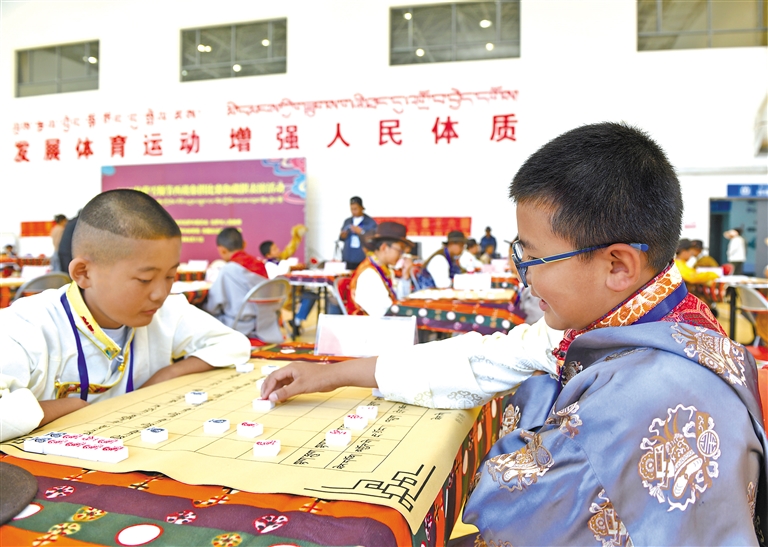 17日上午,在雪頓節(jié)藏棋表演賽上,選手們緊張對弈。記者 旦增蘭澤 攝