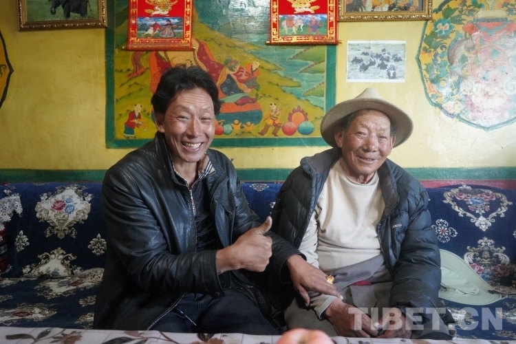 羅加書記和父親長得很像,尤其是那雙有神的眼睛里,都帶著一絲堅(jiān)韌。坐在一旁的82歲老人貢桑白旦沉默少言,但當(dāng)他講起自己當(dāng)年的一段段故事,你會覺得這眼神中盡是歲月的沉淀。