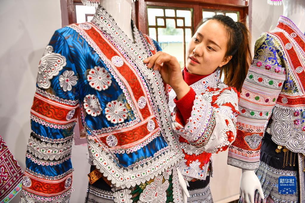 地處貴州烏江源頭水域的化屋村,掩映在山水之間,恬靜而美麗?;荽宸沁z工坊里一片忙碌,繡娘們飛針走線,正趕制一批民族服飾訂單。