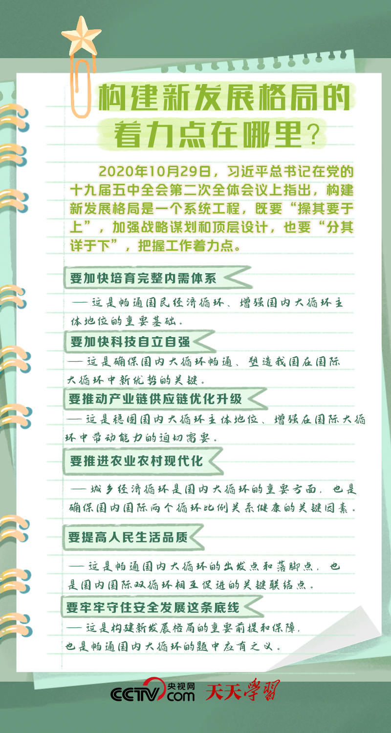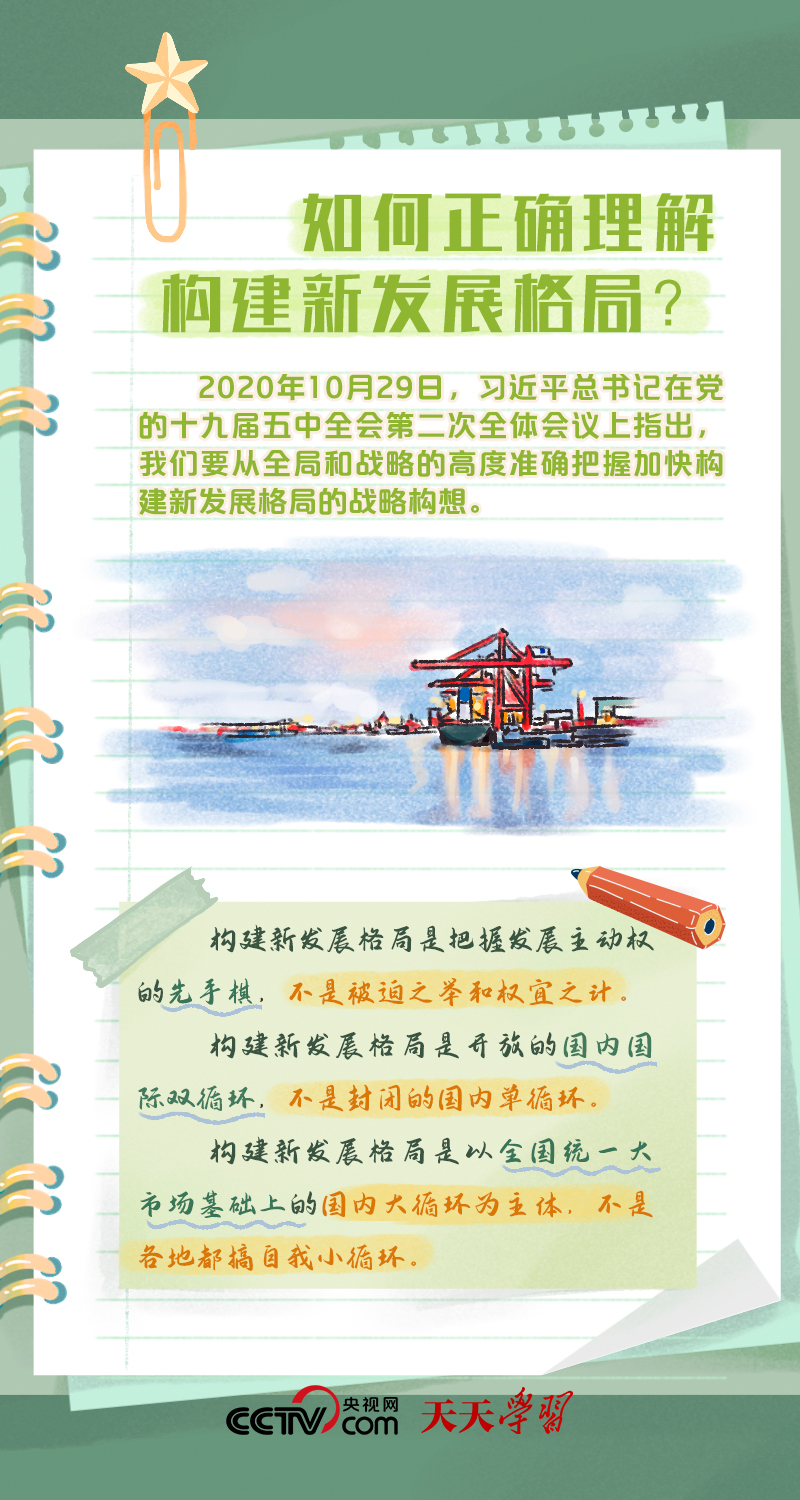 天天學(xué)習(xí)構(gòu)建以國(guó)內(nèi)大循環(huán)為主體、國(guó)內(nèi)國(guó)際雙循環(huán)相互促進(jìn)的新發(fā)展格局,是根據(jù)我國(guó)發(fā)展階段、環(huán)境、條件變化,特別是基于我國(guó)比較優(yōu)勢(shì)變化,審時(shí)度勢(shì)作出的重大決策。構(gòu)建新發(fā)展格局是事關(guān)全局的系統(tǒng)性、深層次變革,是立足當(dāng)前、著眼長(zhǎng)遠(yuǎn)的戰(zhàn)略謀劃。