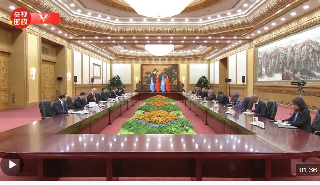 10月18日晚,國家主席習(xí)近平在人民大會堂會見來華出席第三屆“一帶一路”國際合作高峰論壇的聯(lián)合國秘書長古特雷斯。