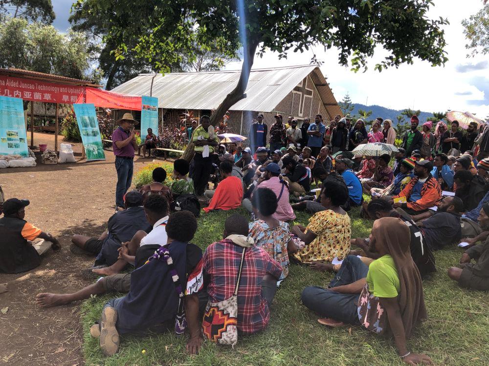 2020年12月15日,中國專家在巴布亞新幾內(nèi)亞東高地省中國援助巴新菌草和旱稻技術(shù)項(xiàng)目第9期培訓(xùn)班上授課。