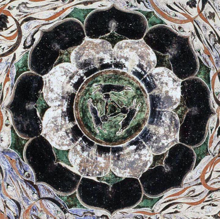 三只兔子競相追逐,兩兩共用一耳,形成了“三兔共耳”的獨特造型……在敦煌莫高窟,有20個洞窟出現(xiàn)了這個趣味圖案。
