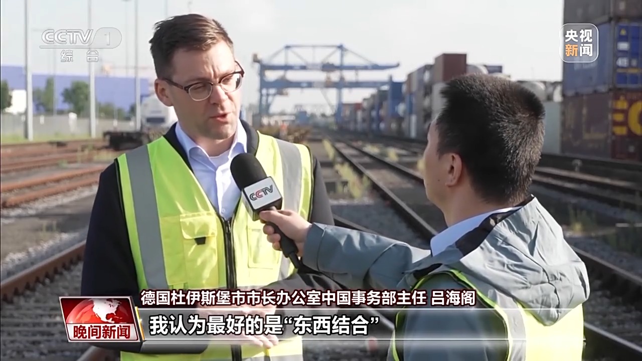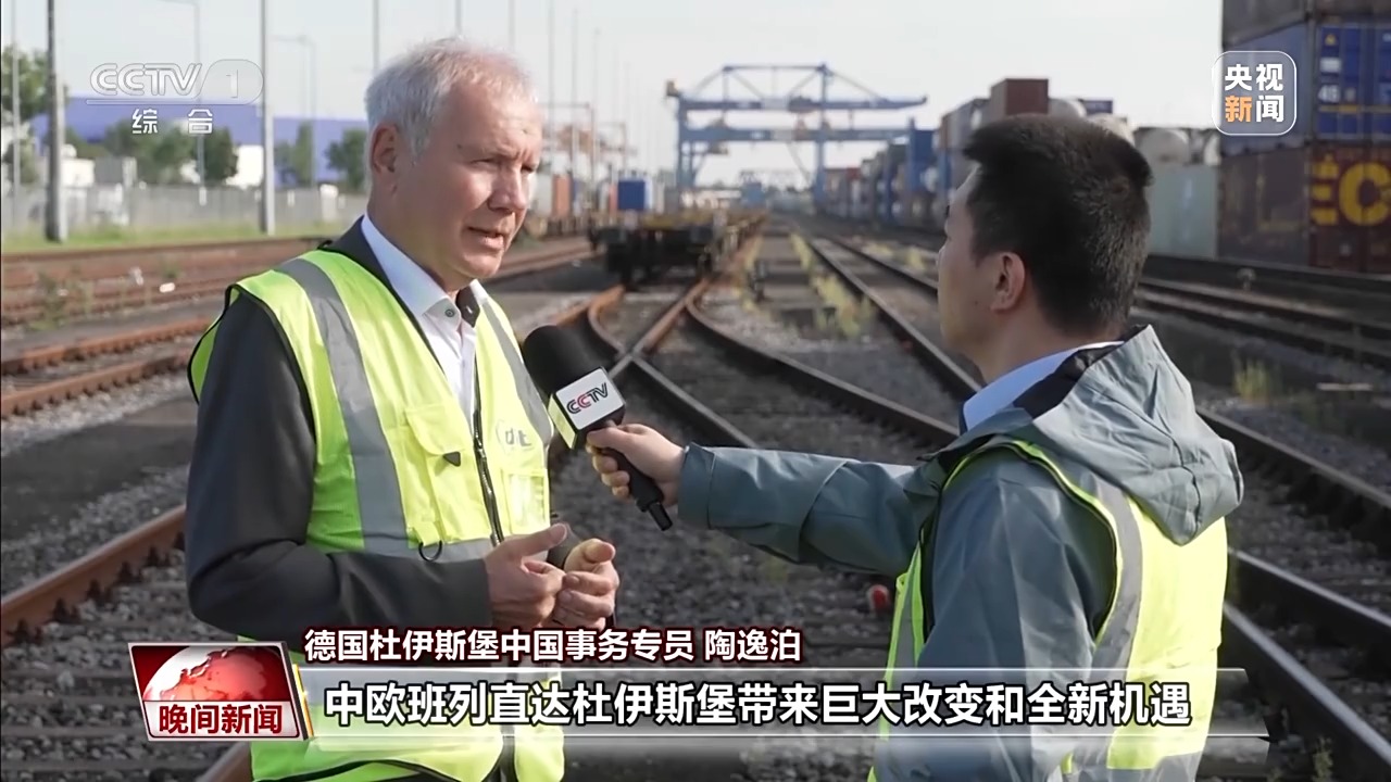 德國杜伊斯堡中國事務專員 陶逸泊:中歐班列直達杜伊斯堡帶來巨大改變和全新機遇。這條線路綿延上萬公里,從中國出發(fā)穿越6個國家,抵達我們這里。一切工作能在十幾天內(nèi)完成,非常了不起。