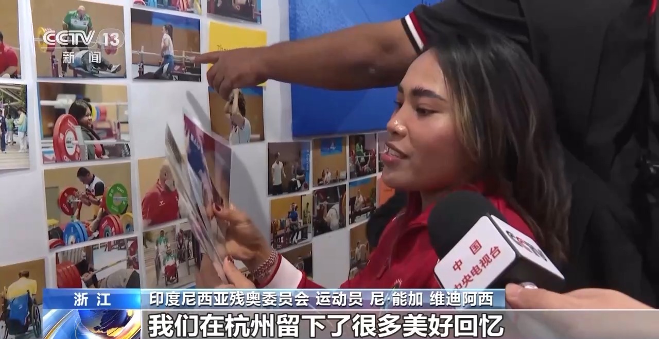 印度尼西亞殘奧委員會(huì)運(yùn)動(dòng)員 尼·能加 維迪阿西:這真的很棒,我們?cè)诤贾萘粝铝撕芏嗝篮玫挠洃?。這是我第一次擁有這樣的照片,工作人員拍照之后會(huì)張貼在墻上,我們可以拿走,留下自己寫(xiě)的卡紙信。