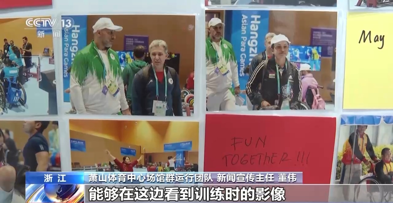 杭州蕭山體育中心體育館,是杭州第4屆亞殘運(yùn)會(huì)舉重項(xiàng)目的比賽場(chǎng)館,10月23日,舉重項(xiàng)目已經(jīng)在這里正式開(kāi)賽。場(chǎng)館的工作人員為了給運(yùn)動(dòng)員放松心情,并鼓勵(lì)他們比賽,特意制作了一面照片墻。