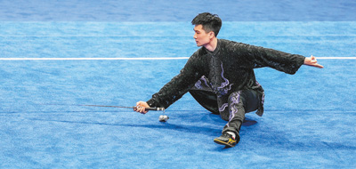 9月25日,武術(shù)男子太極拳太極劍全能決賽,中國體育代表團選手高浩楠在比賽中。