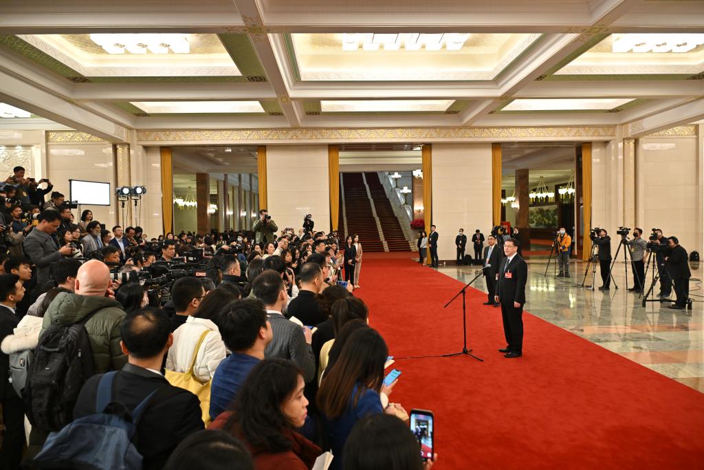 3月5日,第十四屆全國人民代表大會第二次會議首場“部長通道”集中采訪活動在北京人民大會堂舉行。新華社記者 李鑫 攝