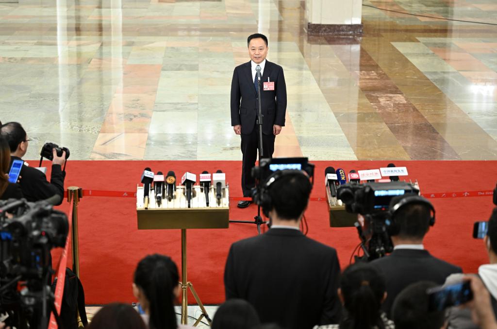 3月5日,第十四屆全國人民代表大會第二次會議首場“部長通道”集中采訪活動在北京人民大會堂舉行。這是水利部部長李國英接受媒體采訪。新華社記者 劉續(xù) 攝