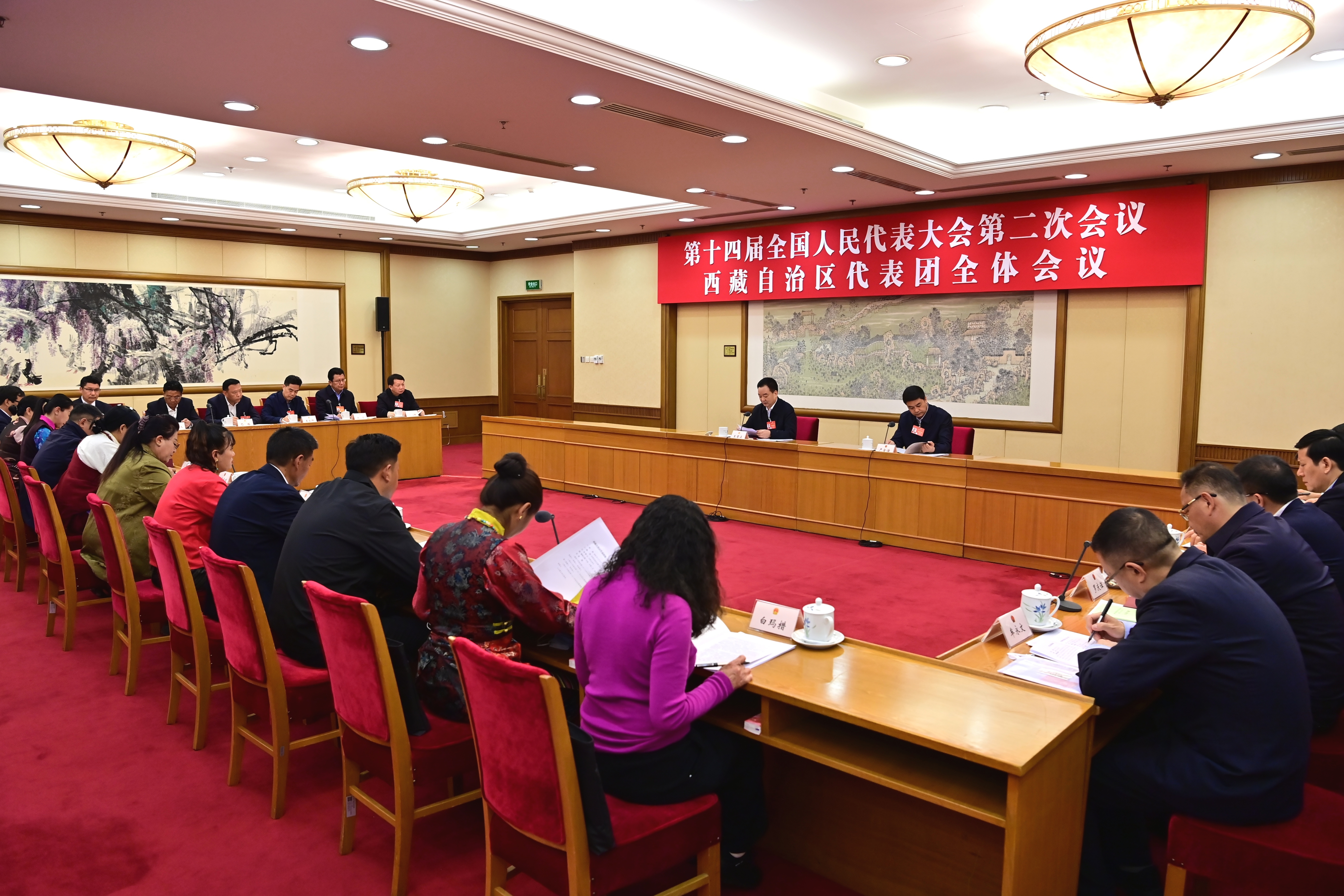 經(jīng)過表決,會議推選王君正為十四屆全國人大二次會議西藏代表團團長,嚴金海、王永祥為副團長。會議審議了十四屆全國人大二次會議主席團和秘書長名單草案、大會議程草案。