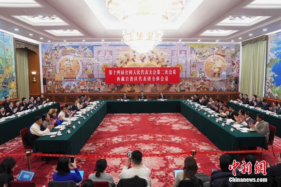 3月6日,出席十四屆全國人大二次會議的西藏代表團在北京人民大會堂西藏廳舉行開放團組會議,審議政府工作報告并回答記者提問。