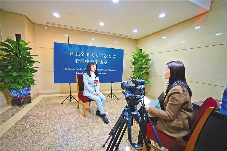 圖為全國人大代表白瑪措接受中央媒體采訪。記者 旦增西旦 攝