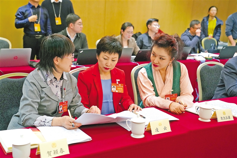 3月5日,全國政協(xié)十四屆二次會(huì)議分界別討論政協(xié)常委會(huì)工作報(bào)告和提案工作情況報(bào)告,住藏全國政協(xié)委員緊緊圍繞兩個(gè)報(bào)告,結(jié)合西藏政協(xié)工作實(shí)際,在小組討論中積極履職建言。圖為住藏全國政協(xié)委員卓嘎(左)和朗杰拉措(右)在會(huì)議結(jié)束后討論交流。