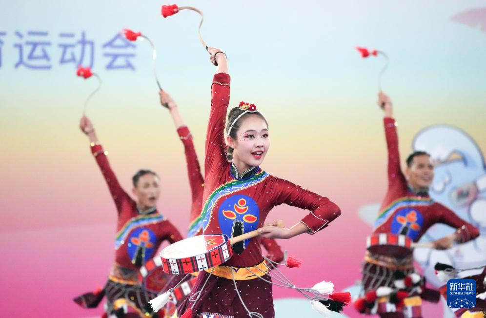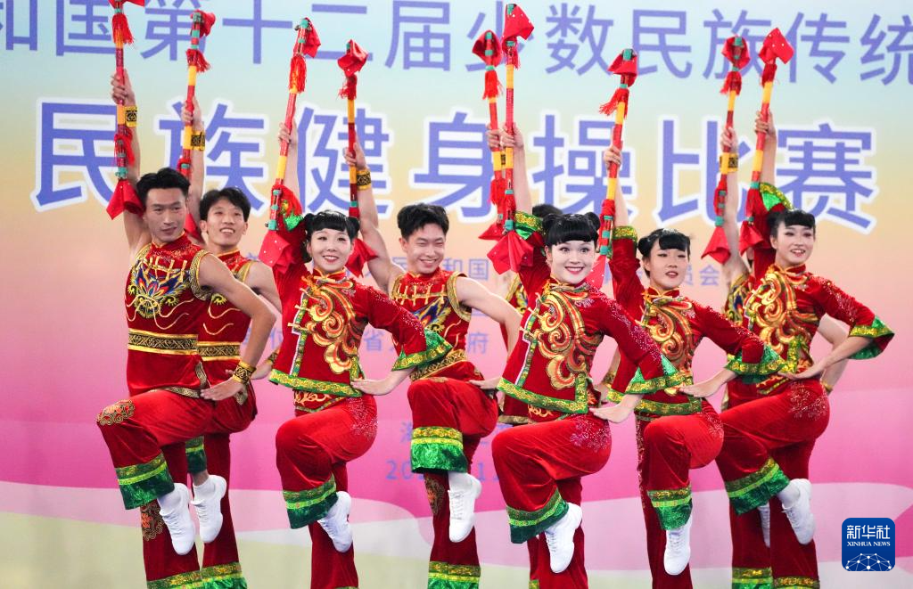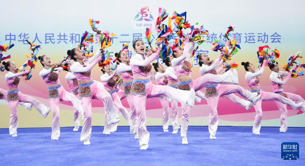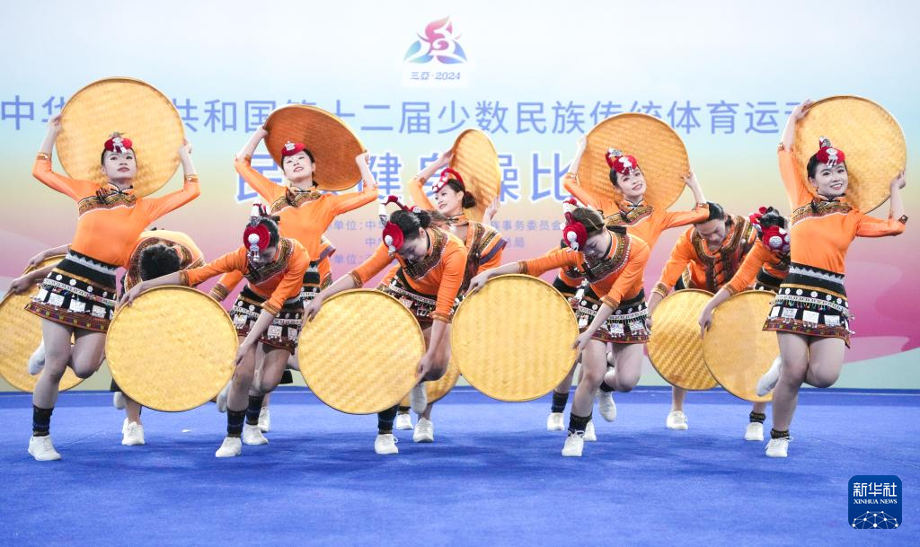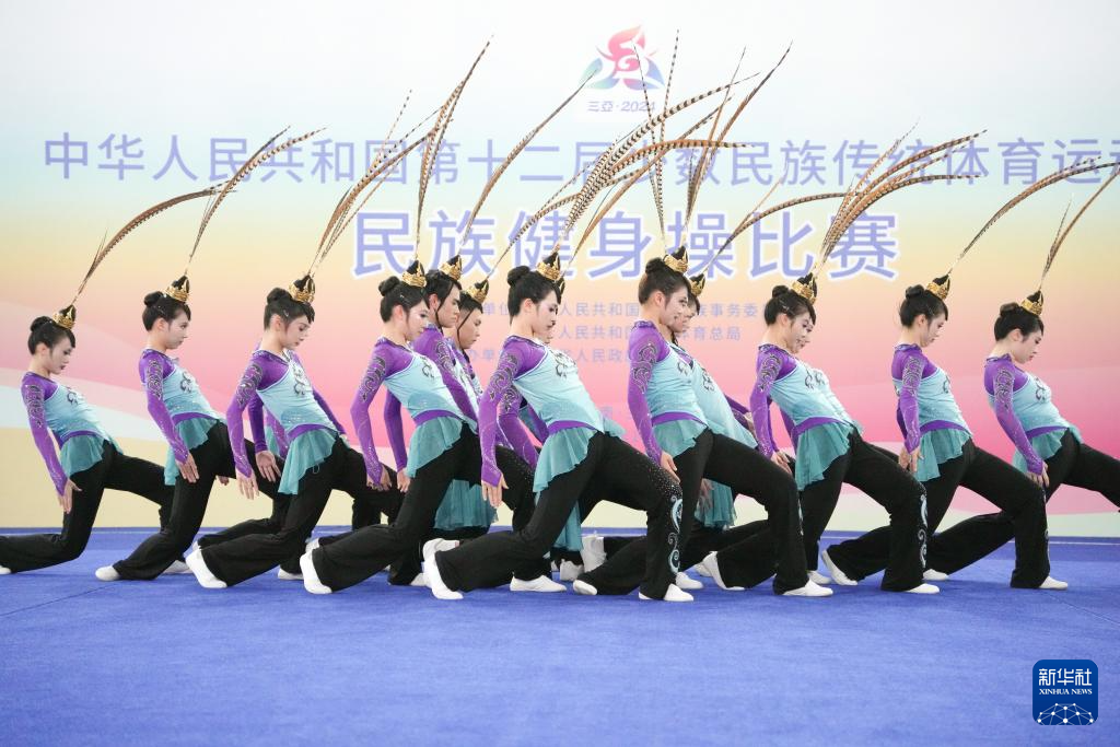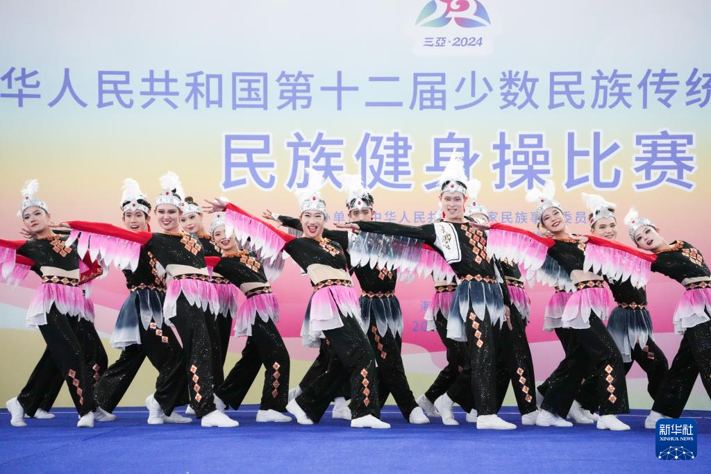 當日,第十二屆全國少數民族傳統體育運動會民族健身操自選套路第一輪比賽在西南大學三亞中學體育館舉行。