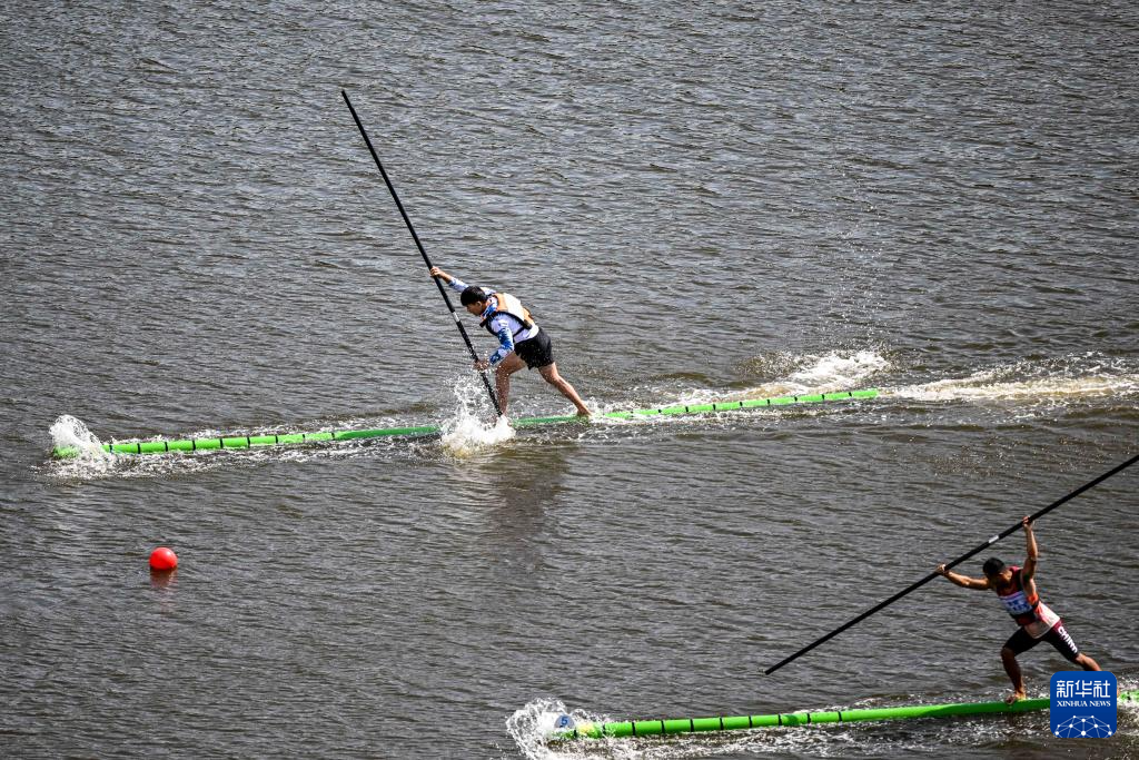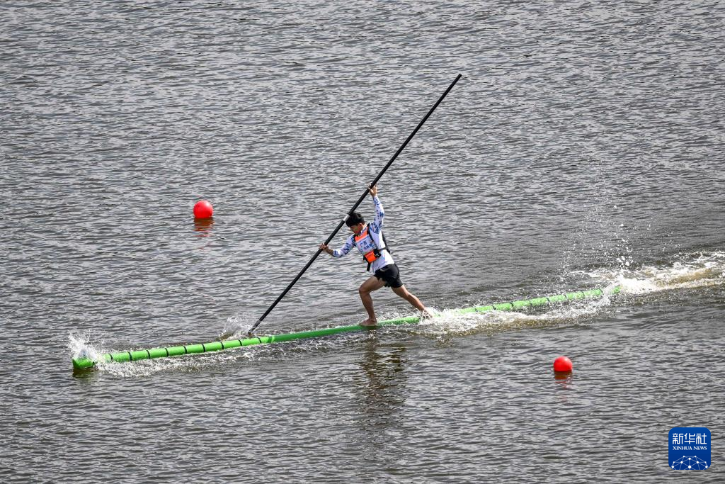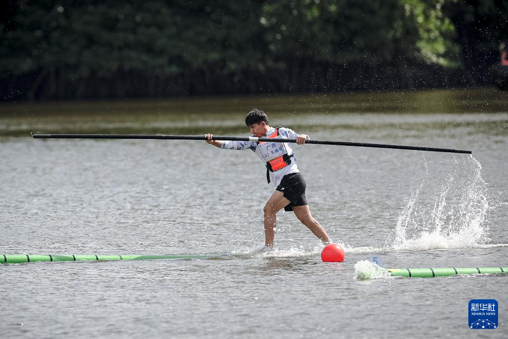 當日,第十二屆全國少數(shù)民族傳統(tǒng)體育運動會獨竹漂男子組60米直道賽在海南省三亞市舉行。