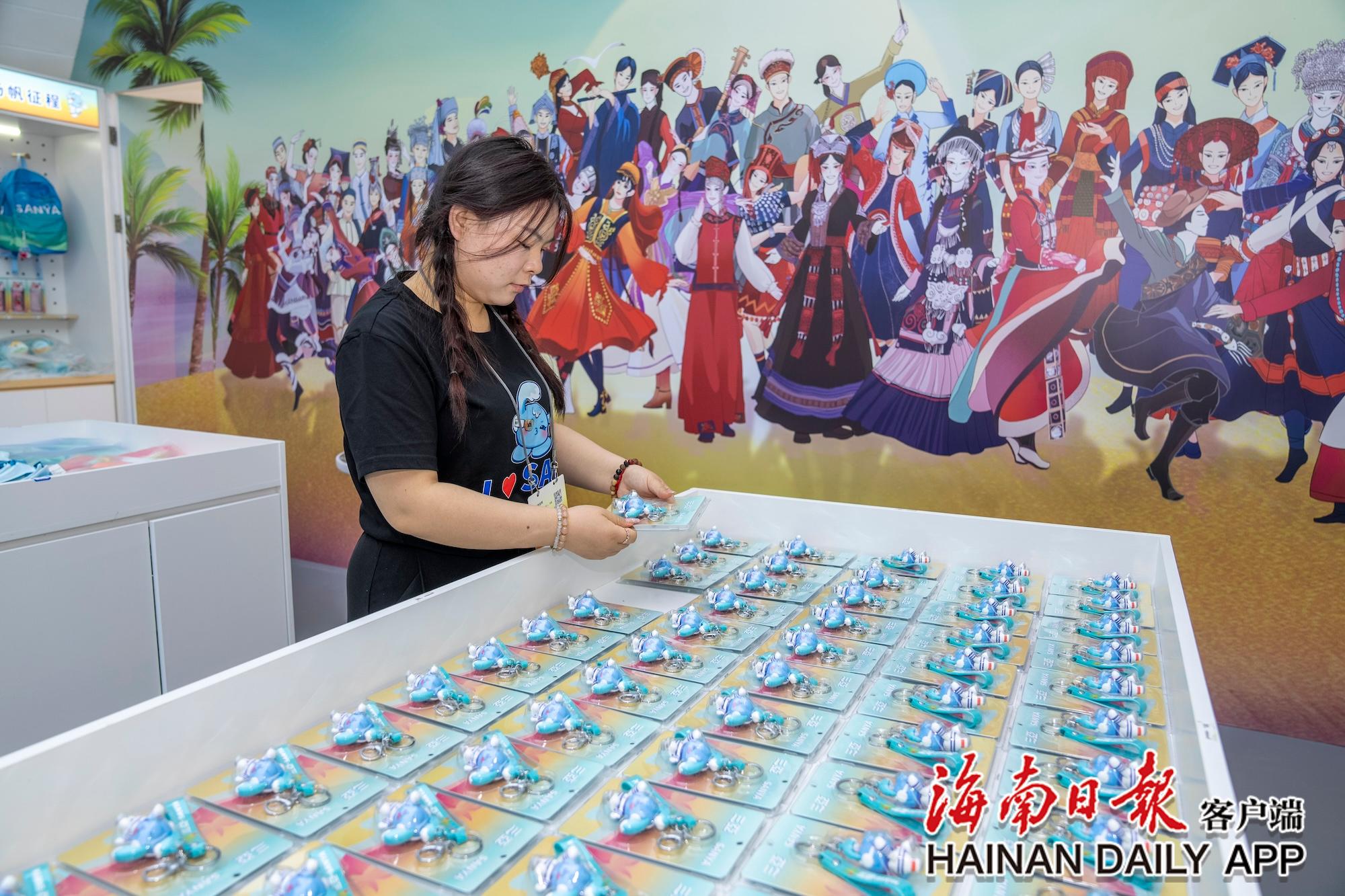 11月8日,在三亞灣紅樹(shù)林度假世界的運(yùn)動(dòng)會(huì)官方特許商品展示廳內(nèi),工作人員擺放鑰匙扣。海南日?qǐng)?bào)全媒體記者 李天平 攝