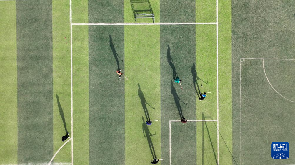 這是11月11日,在新疆于田縣體育場,新疆麥熱球隊(duì)在訓(xùn)練中(無人機(jī)照片)。