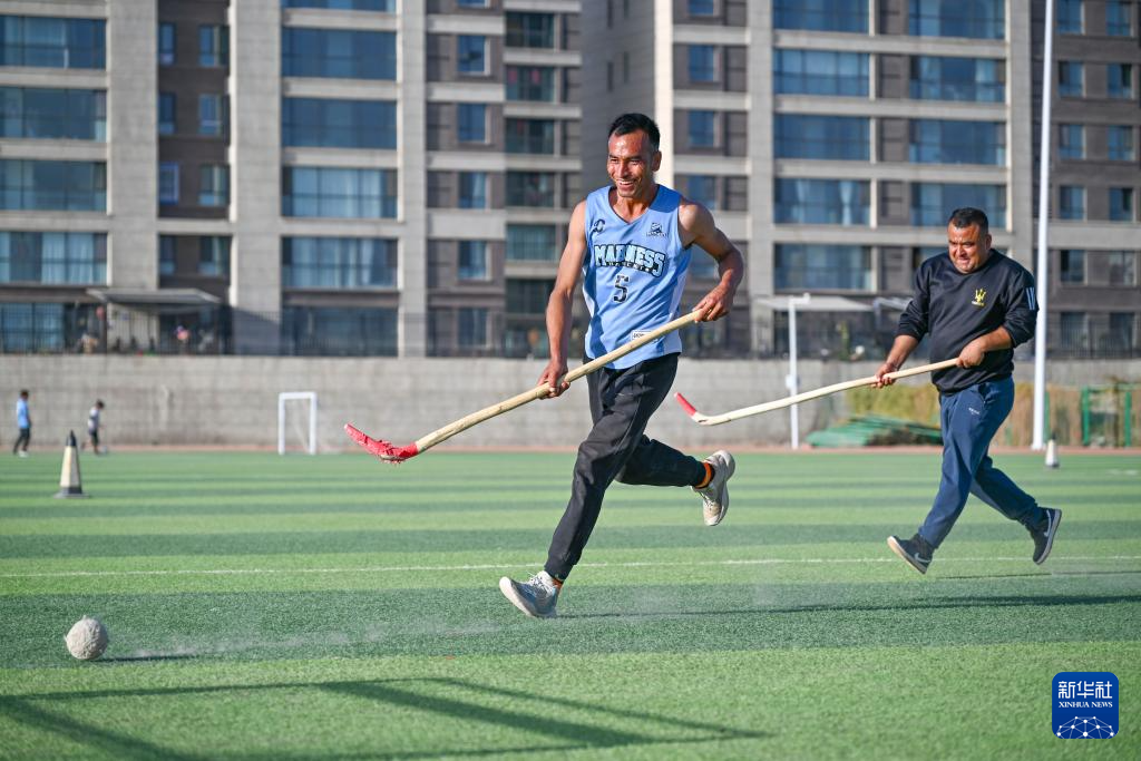 “麥熱球是一項(xiàng)非常古老的運(yùn)動(dòng),我爺爺?shù)臓敔斈菚r(shí)候就開始玩?!卑⒉范爬蝿t說。麥熱球,又被稱為“維吾爾族曲棍球”,是在新疆和田地區(qū)廣泛流行的古老運(yùn)動(dòng)。規(guī)則類似于現(xiàn)代曲棍球,但是不設(shè)置守門員,把球打到對方球門里即為得分。2021年,這項(xiàng)運(yùn)動(dòng)(維吾爾族曲棍球)被正式列入國家級非物質(zhì)文化遺產(chǎn)代表性項(xiàng)目名錄。阿卜杜拉艾孜則從很小就開始接觸麥熱球,在農(nóng)閑時(shí)他常常和兄弟們打上幾場麥熱球。他說:“小的時(shí)候,爸爸教會我打麥熱球,現(xiàn)在我要把這項(xiàng)運(yùn)動(dòng)帶來的快樂傳遞給更多人?!?/p>