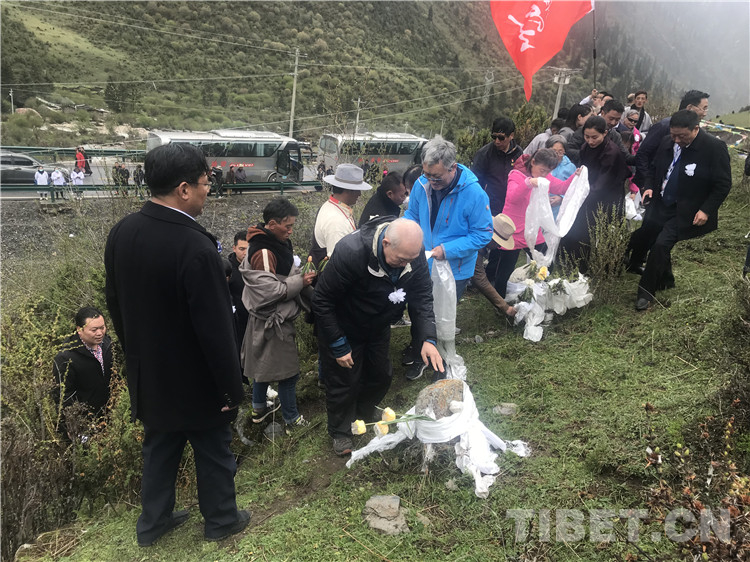 圖為十八軍老戰(zhàn)士及十八軍后代一行向9名十八軍無名女兵墓敬獻哈達。攝影:龍真多吉(中國西藏網 記者/龍真多吉)