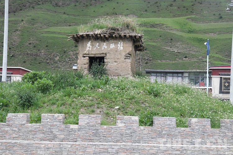 瞭望臺建在吉若塘中心的一座土丘上,是一座夯土圍墻和細(xì)木屋頂建造的簡易小屋,高約2.5米,長寬各約3米,外墻上方醒目地方寫著“為人民服務(wù)”五個白色大字,現(xiàn)在依然很清晰。據(jù)當(dāng)?shù)乩习傩战榻B,此前瞭望臺與營地之間還有一條高1.5米、寬約2米的地道,供駐守人員安全通行。