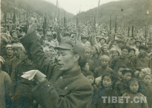 圖為在兩路口出師大會上宣誓 攝于1951年