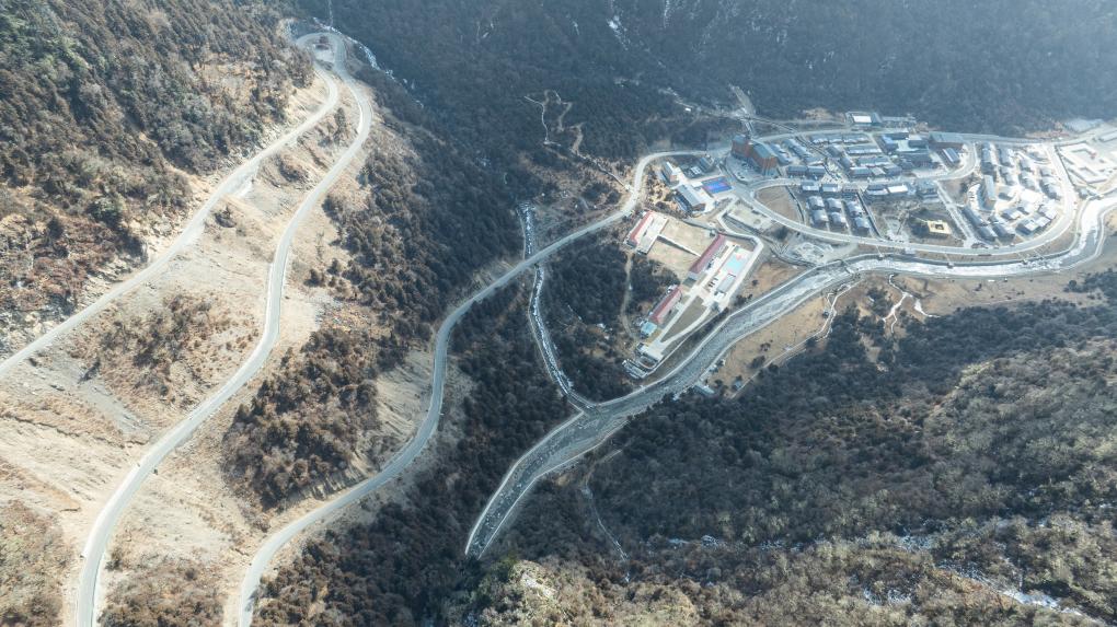 這是2月5日拍攝的玉麥鄉(xiāng)及周邊公路(無人機(jī)照片)。新華社記者 丁增尼達(dá) 攝