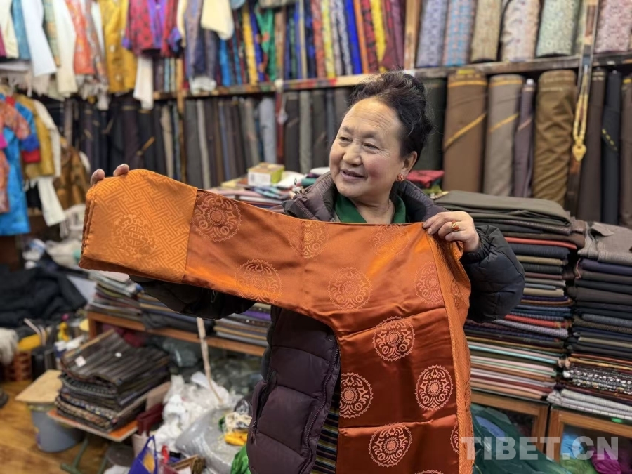 位于拉薩八廓古城區(qū)附近的羅布桑培服裝店內(nèi),前來選購藏裝的顧客絡(luò)繹不絕。店主色珍啦在此經(jīng)營已有二十余年,從最初銷售農(nóng)產(chǎn)品逐步轉(zhuǎn)型為專營藏裝。她表示,每逢新年來臨,店內(nèi)客流量明顯增加,為滿足顧客需求,今年準(zhǔn)備了更加豐富的面料、顏色和款式供選擇。