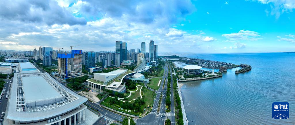 這是9月4日拍攝的廈門國際會(huì)議中心、環(huán)島路一帶濱海景觀(無人機(jī)全景照片)。