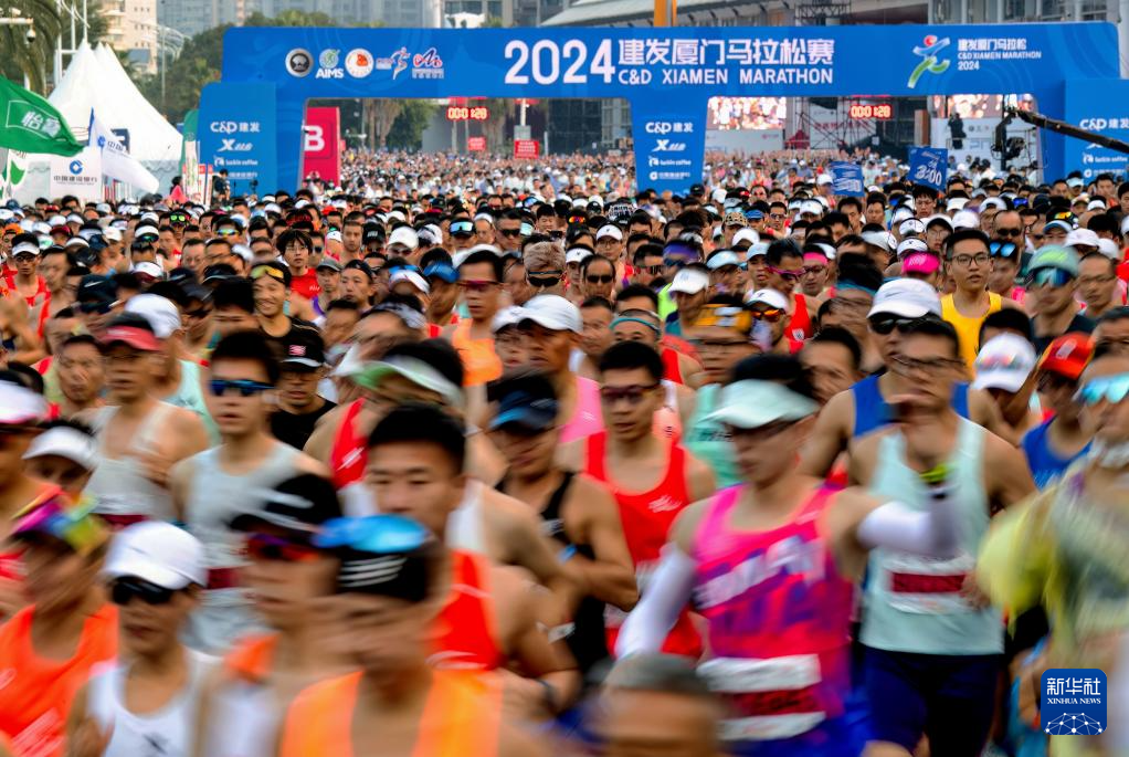 這是選手從2024廈門馬拉松賽起點(diǎn)出發(fā)(1月7日攝)。
