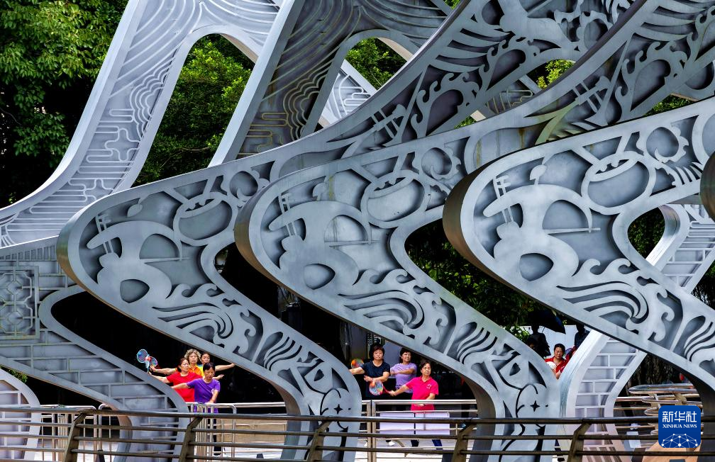 晨練者在廈門市演武大橋觀景平臺(tái)附近鍛煉健身(9月4日攝)。