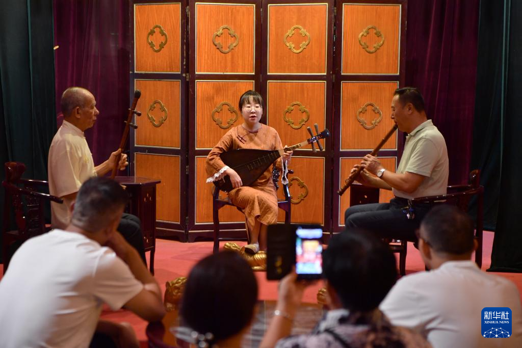 9月4日,游客在廈門鼓浪嶼海天堂構(gòu)景點(diǎn)欣賞南音表演。