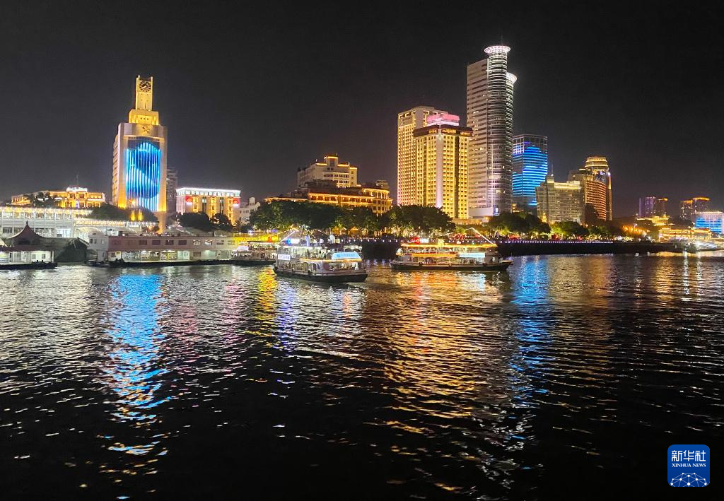 8月5日,夜航的觀光游輪從廈門旅游客運(yùn)碼頭出發(fā)。