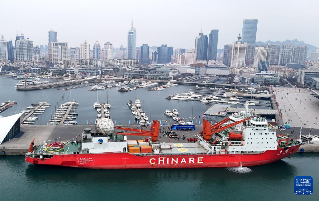 “雪龍”號極地考察船??壳鄭u奧帆基地碼頭(4月10日攝,無人機照片)。