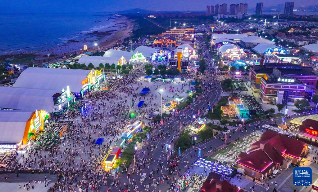 第34屆青島國際啤酒節(jié)在青島西海岸新區(qū)金沙灘啤酒城舉行(7月19日攝,無人機照片)。
