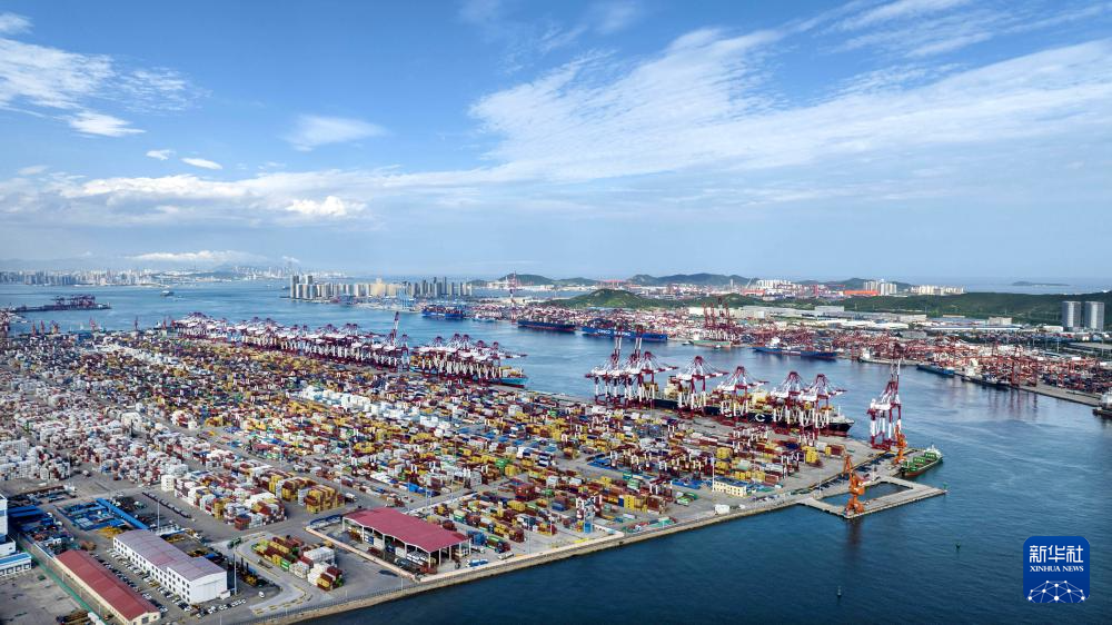 繁忙的青島前灣港(8月6日攝,無人機照片)。