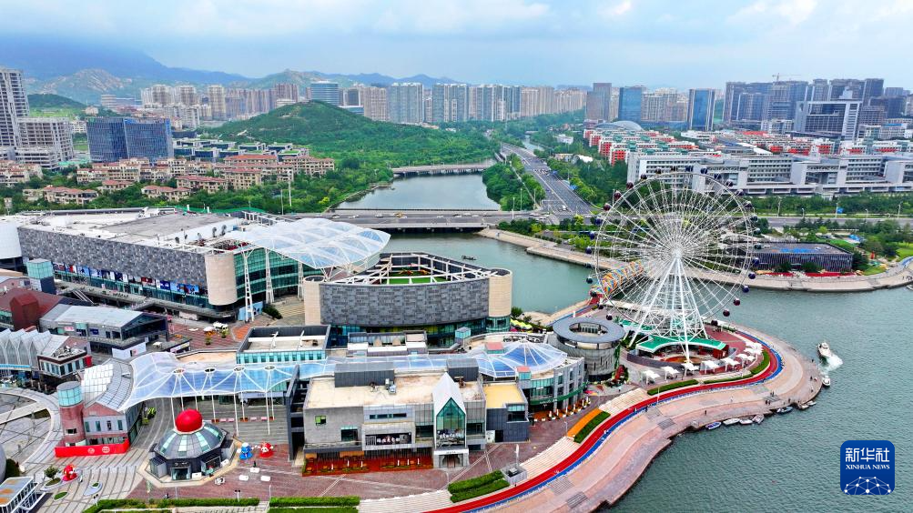 這是青島西海岸新區(qū)“海上嘉年華”市民購物休閑綜合體(8月14日攝,無人機照片)。