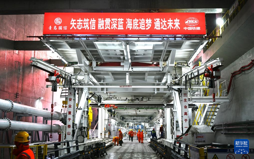 青島膠州灣第二海底隧道施工現(xiàn)場(1月23日攝)。