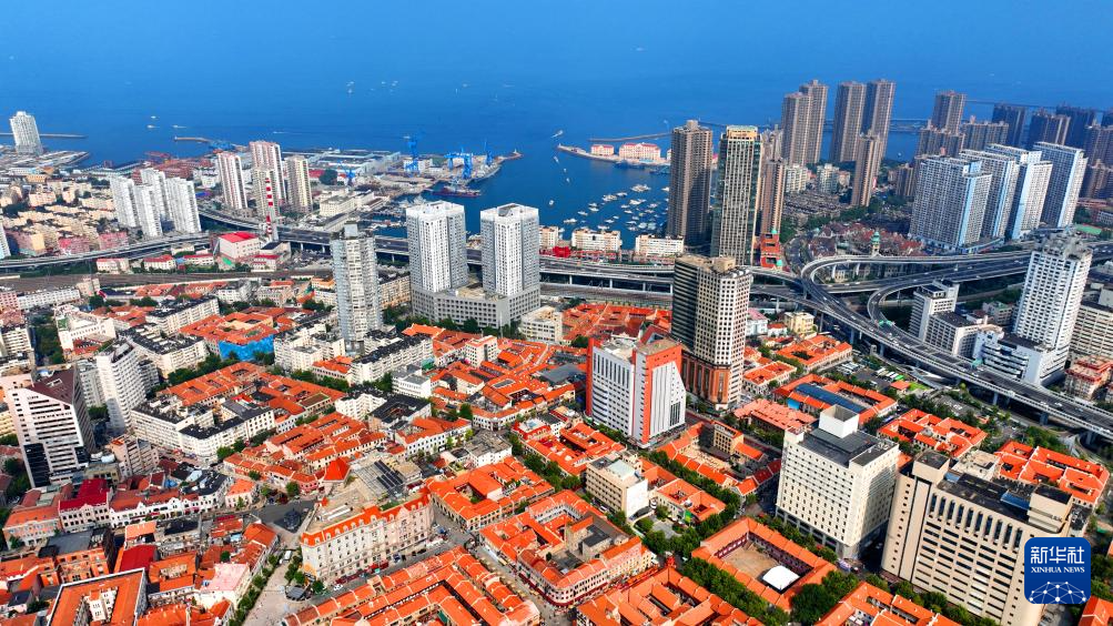 鳥瞰青島老城區(qū)一角(8月17日攝,無人機照片)。持續(xù)“城市更新”讓青島歷史文化街區(qū)煥發(fā)生機。