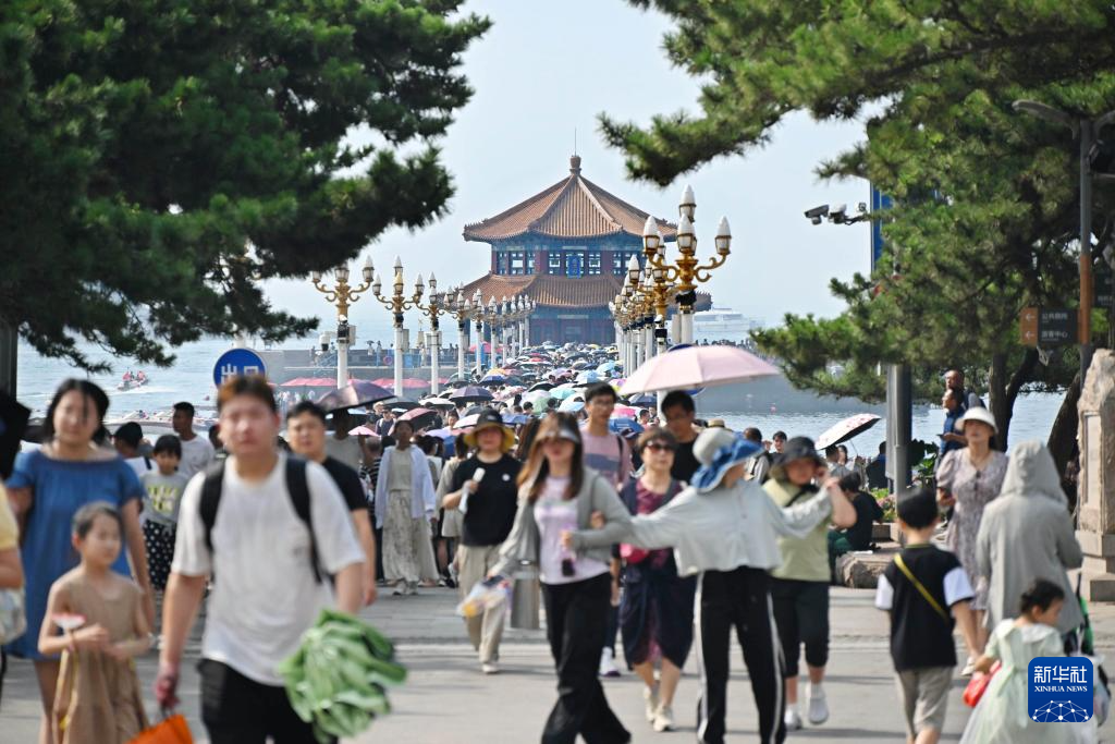人們在青島市南區(qū)棧橋景區(qū)游玩(8月17日攝)。