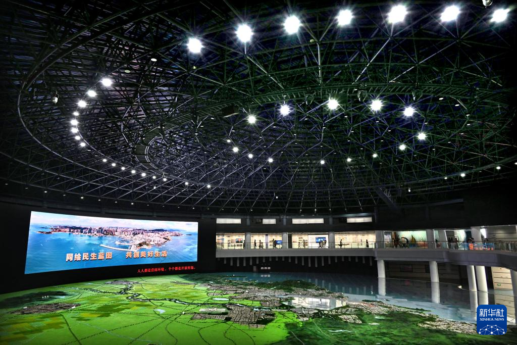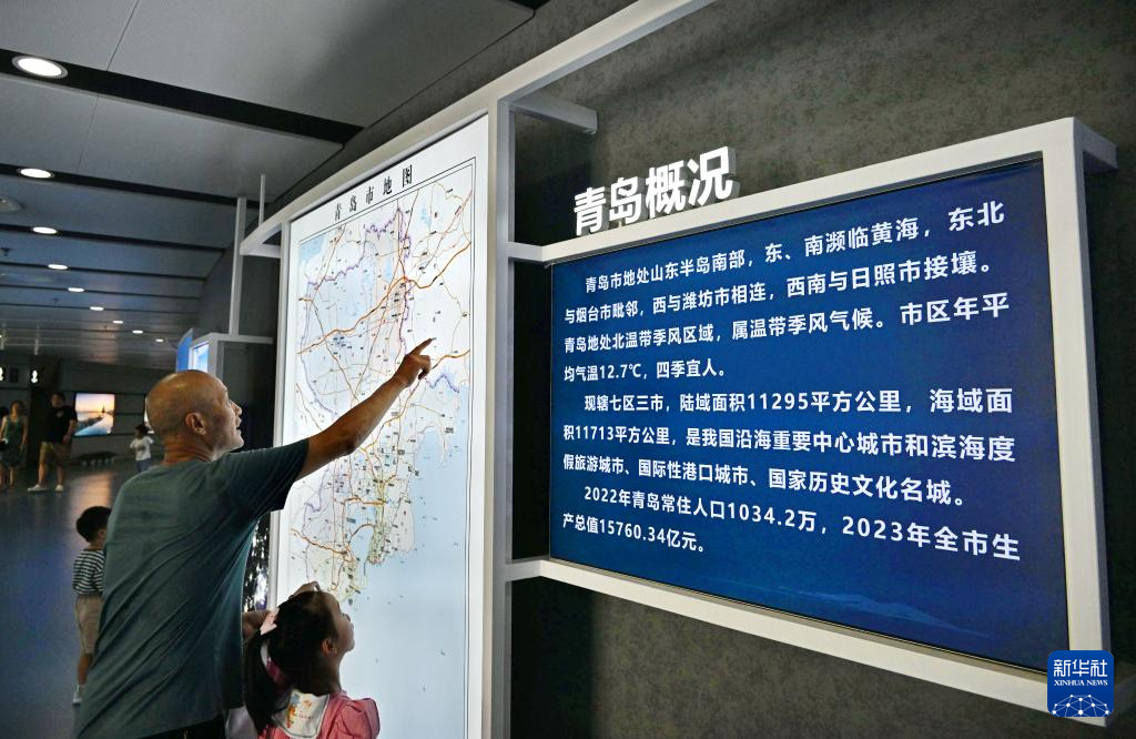 人們在青島城市展覽館內參觀(8月17日攝,無人機照片)。
