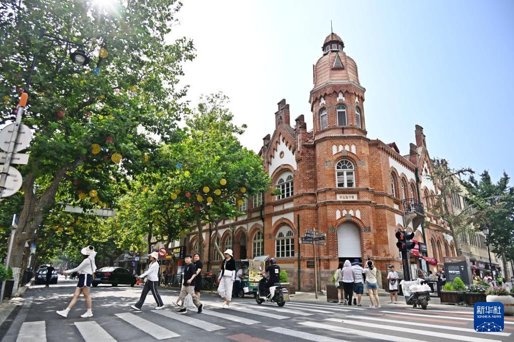人們在青島市南區(qū)歷史文化街區(qū)游玩(8月17日攝)。