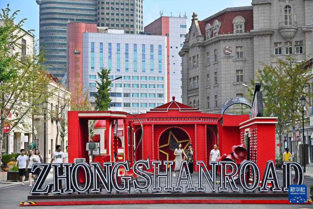人們在青島市南區(qū)中山路上游玩(8月17日攝)。