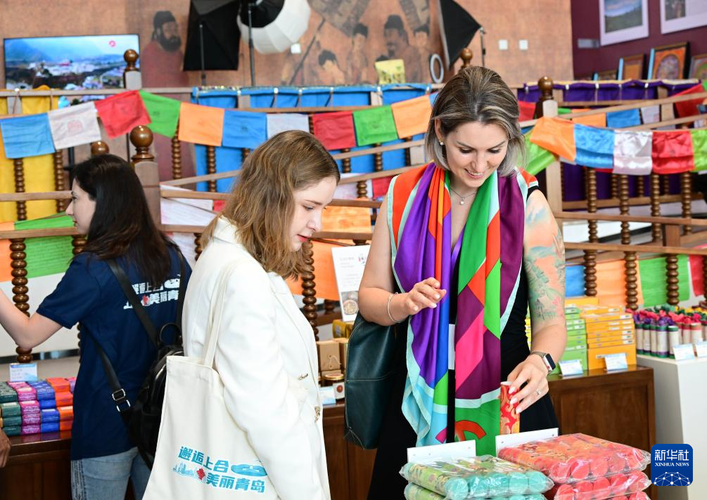 參加2024“邂逅上合·美麗青島”來華留學生社會實踐活動的留學生在位于青島膠州的上合之珠國際博覽中心參觀(6月25日攝)。