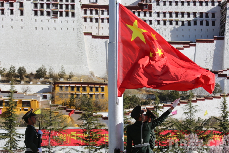 圖為2025年3月28日,國(guó)旗在布達(dá)拉宮廣場(chǎng)升起攝影:旦曲